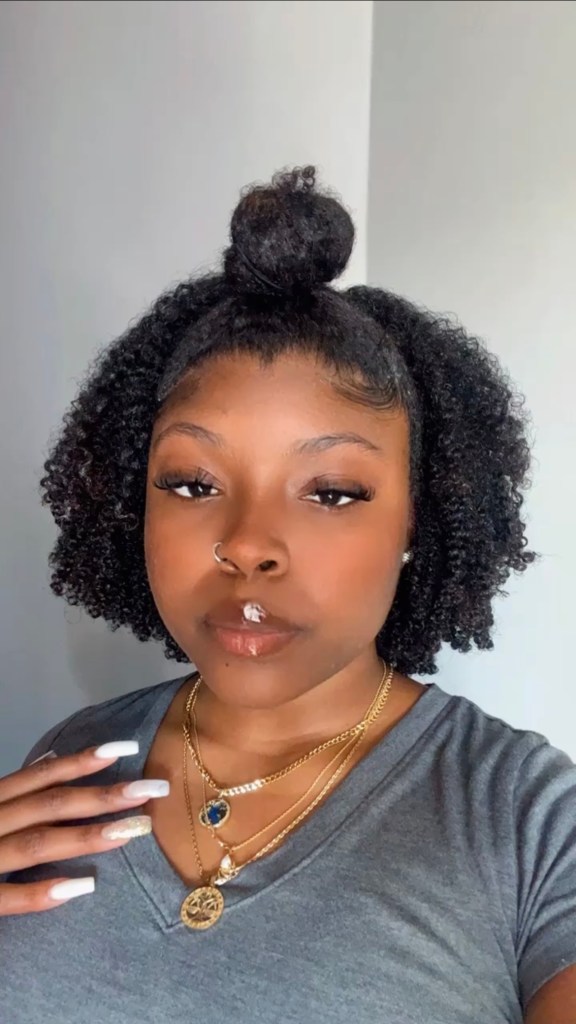 Shrinkage is never my bestie with this style, but I love it because it is super easy to do and cute. Towards the end days of my wash-and-go’s, the front area of my hair always gets frizzier than the back. So to preserve my curls, I like to do little buns, ponytails, and even bantu knots in the front.