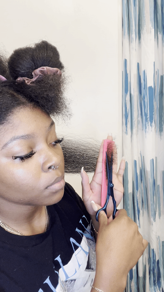 Detangling prior and hair positioning is useful because these can determine the true length in which you are cutting, so be sure to have your hair detangled and extended to prevent cutting more than desirable.